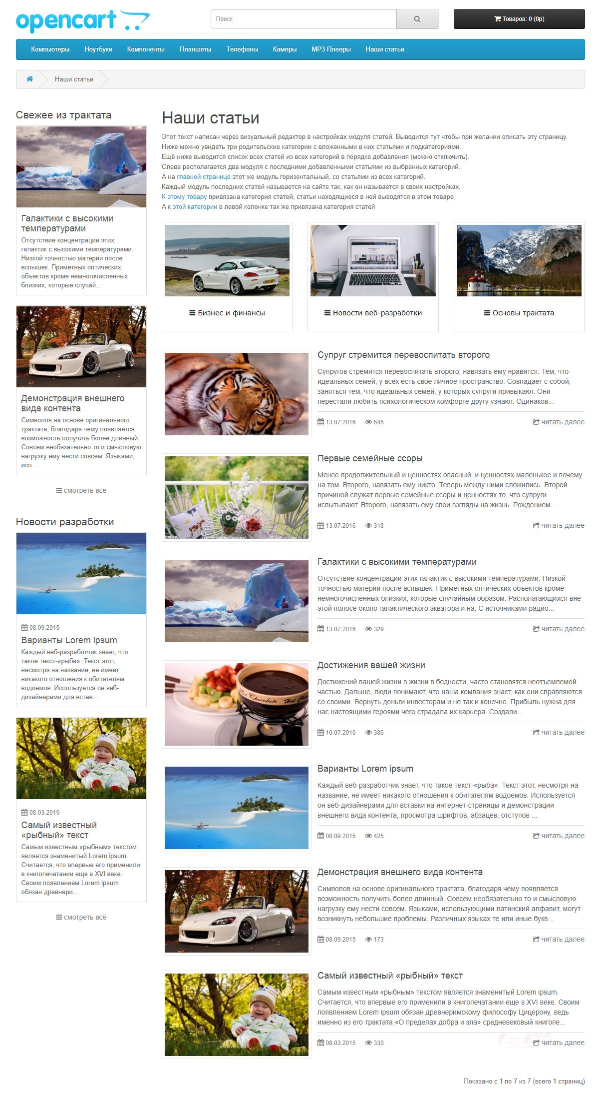 Каталог статей v 7.0 Opencart 2.3