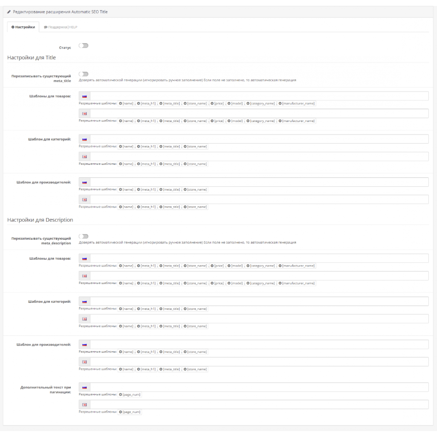 Автозаполнение SEO URL Opencart 3.0