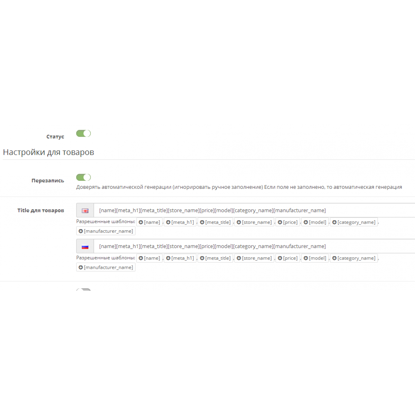 Добро пожаловать в наш интернет-магазин продажи модулей OpenCart и других полезных решений для вашего веб-проекта! Здесь вы найдете Автоматическая генерация Title и Description и множество других качественных плагинов и модулей для веб-разработки по выгодным ценам. Автоматическая генерация Title и Description