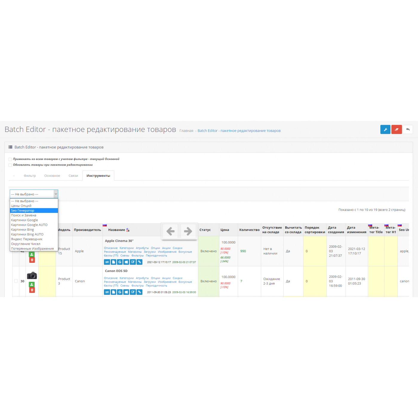 Добро пожаловать в наш интернет-магазин продажи модулей OpenCart и других полезных решений для вашего веб-проекта! Здесь вы найдете Batch Editor - пакетное редактирование товаров и множество других качественных плагинов и модулей для веб-разработки по выгодным ценам. Batch Editor - пакетное редактирование товаров