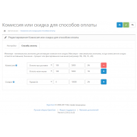 Opencart 2.x - Комиссия или скидка для способов оплаты
