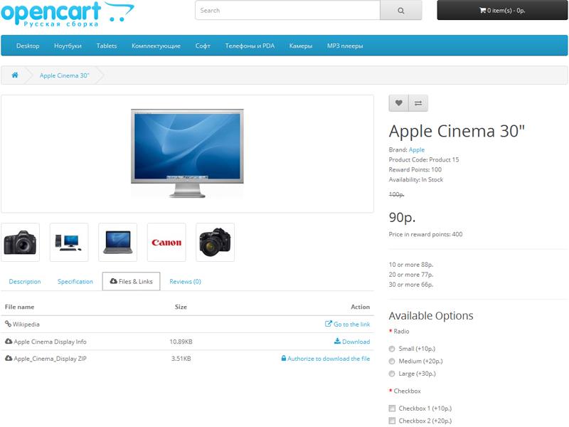 OpenCart - Размеры Продукта
