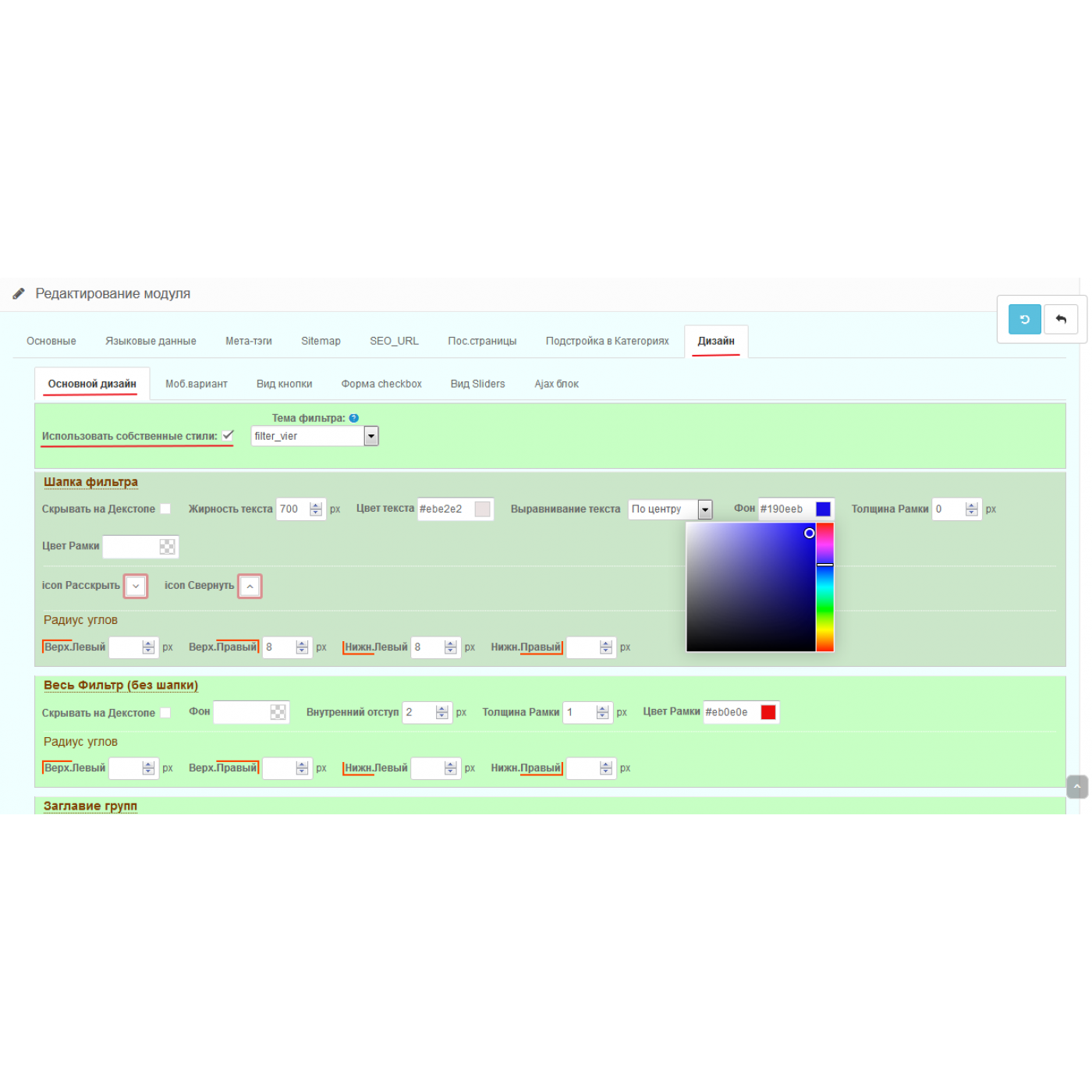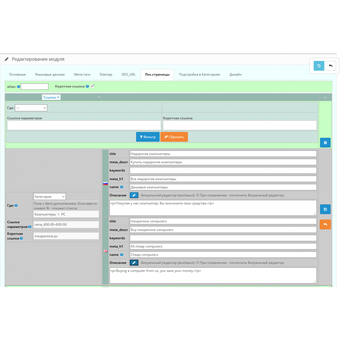FilterVier SEO фильтр товаров для Opencart 2.x и 3.x. обычно предлагает возможности настройки и расширения в соответствии с вашими потребностями. Вы можете найти информацию о доступных настройках и функциях на странице продукта или в документации к FilterVier SEO фильтр товаров для Opencart 2.x и 3.x..