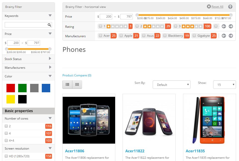 Модуль Умный фильтр товаров для Opencart 2