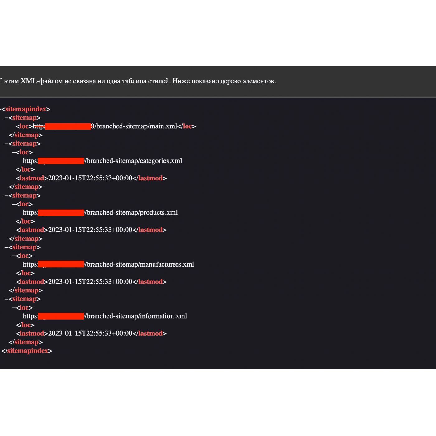Branched Sitemap разделяет карту сайта на ряд xml-файлов, сортируя товары и категории в порядке свежести редактировани