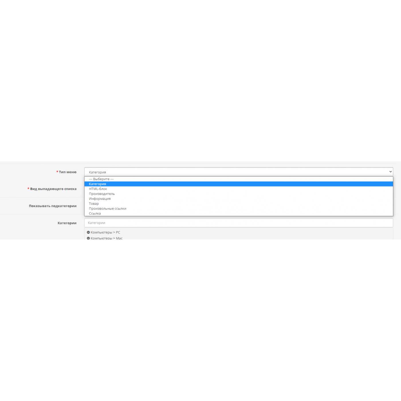 Модуль Вертикальное мегаменю для Opencart 2.x