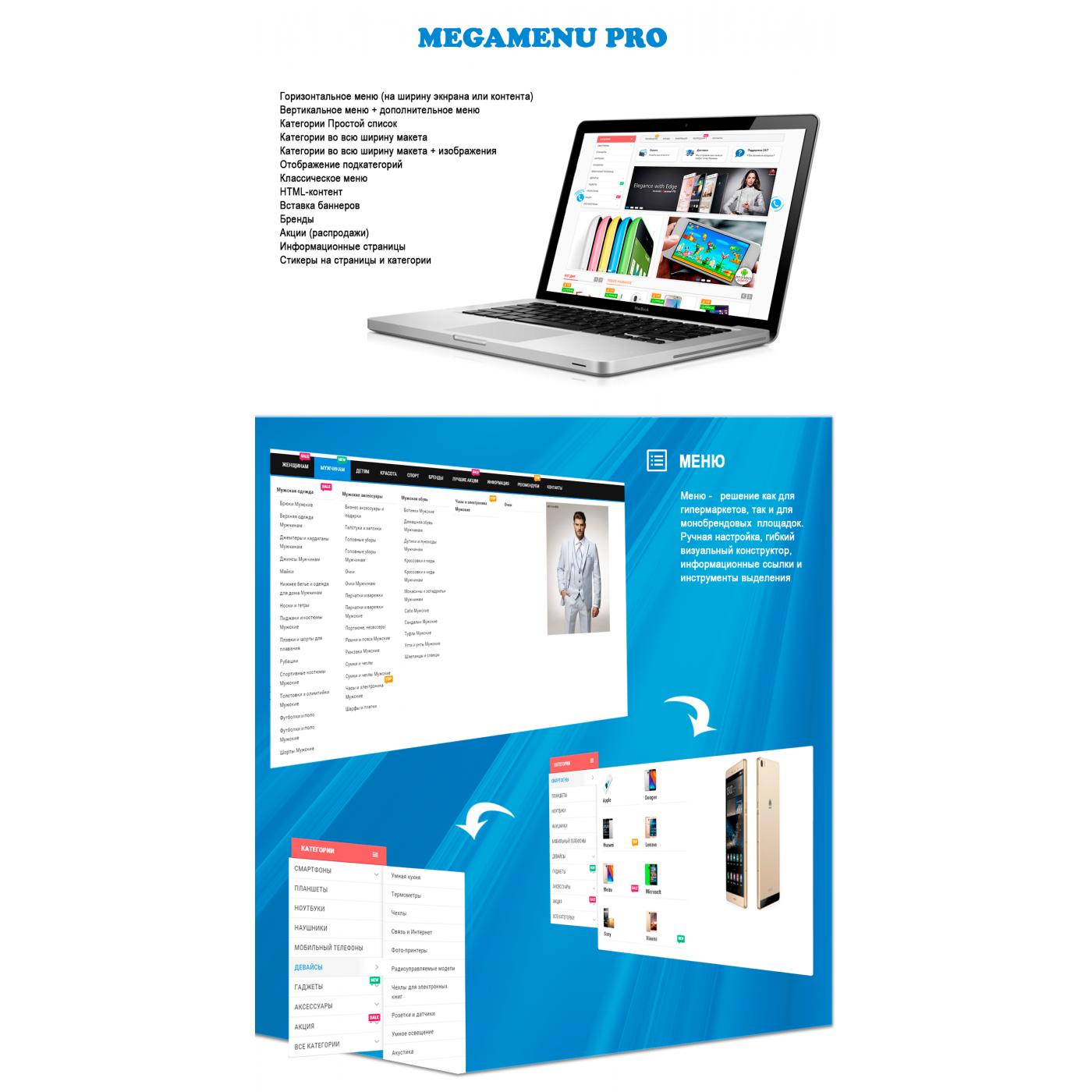 Добро пожаловать в наш интернет-магазин продажи модулей OpenCart и других полезных решений для вашего веб-проекта! Здесь вы найдете MegaMenu Pro (МегаМеню Про) и множество других качественных плагинов и модулей для веб-разработки по выгодным ценам. MegaMenu Pro (МегаМеню Про)