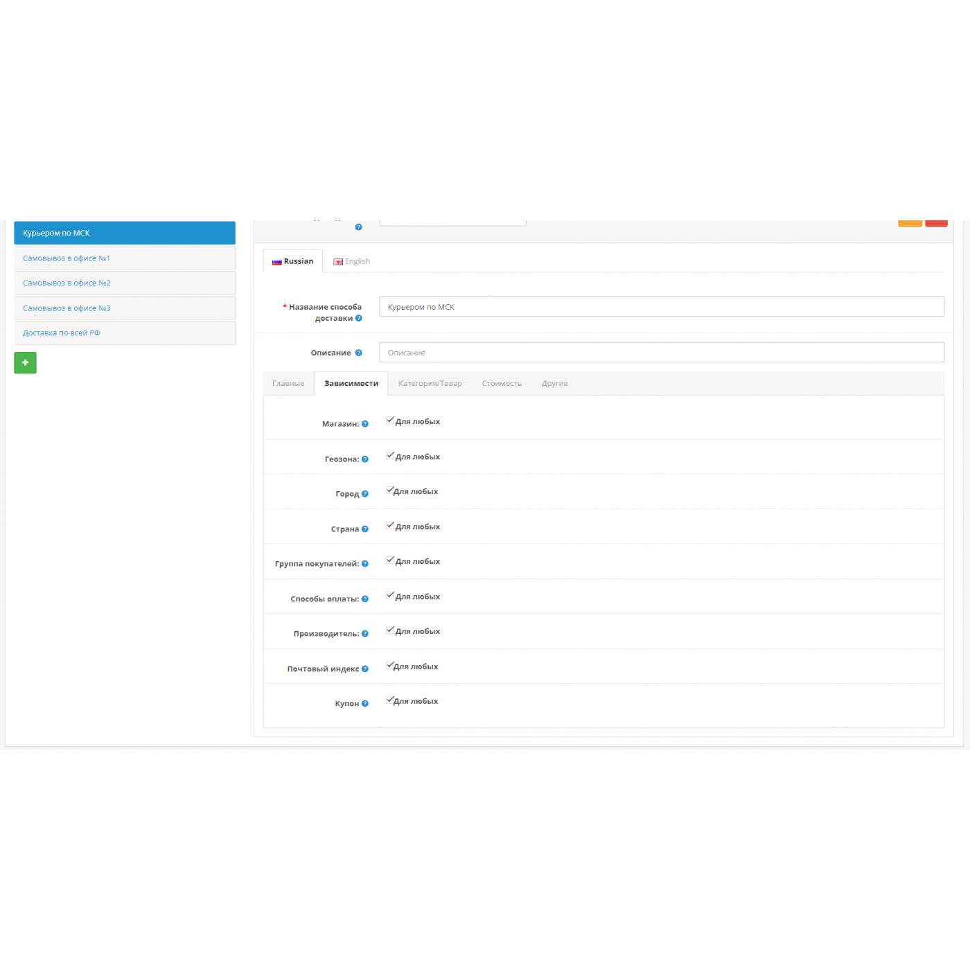 Добро пожаловать в наш интернет-магазин продажи модулей OpenCart и других полезных решений для вашего веб-проекта! Здесь вы найдете Мультизависимые способы доставки и множество других качественных плагинов и модулей для веб-разработки по выгодным ценам. Мультизависимые способы доставки