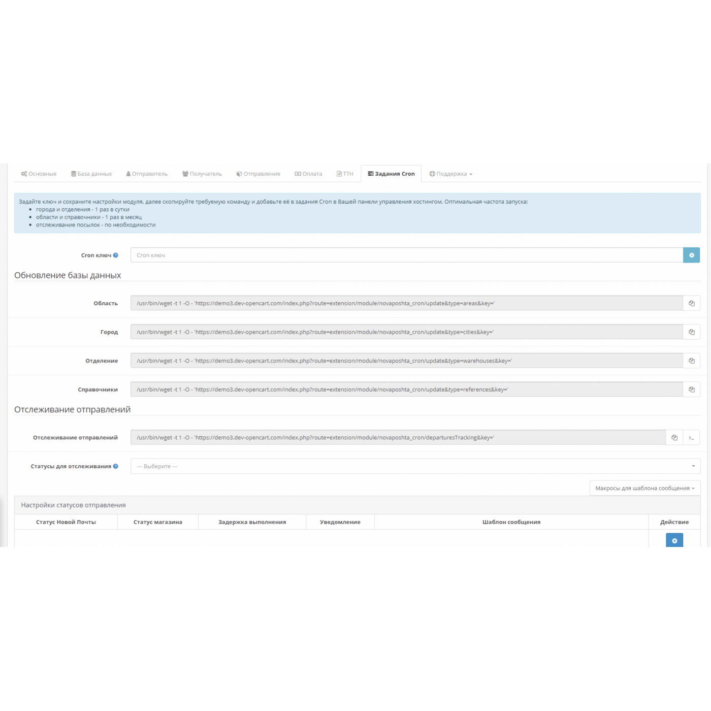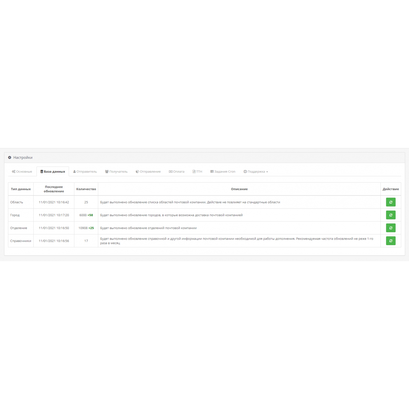 ◾️Автоматическое обновление базы данных модуля (области, города, отделения, справочники);