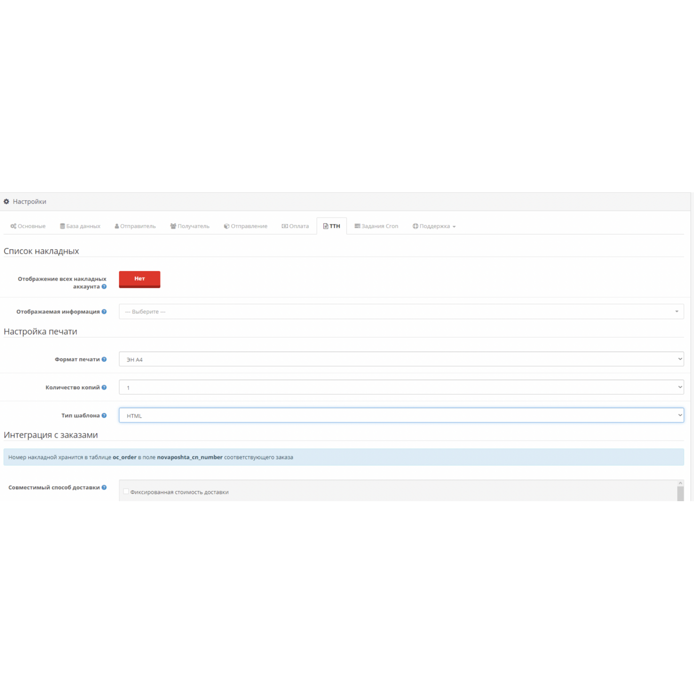 Настройка интеграции ТТН: