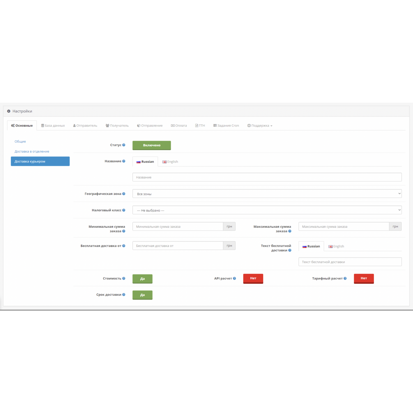 ☑️ Вкл/выкл API расчет стоимости доставки (используемая информация для расчета: персональные настройки отправителя, город отправителя и получателя, тип доставки, стоимость товара, вес товара, объём товара, упаковка);