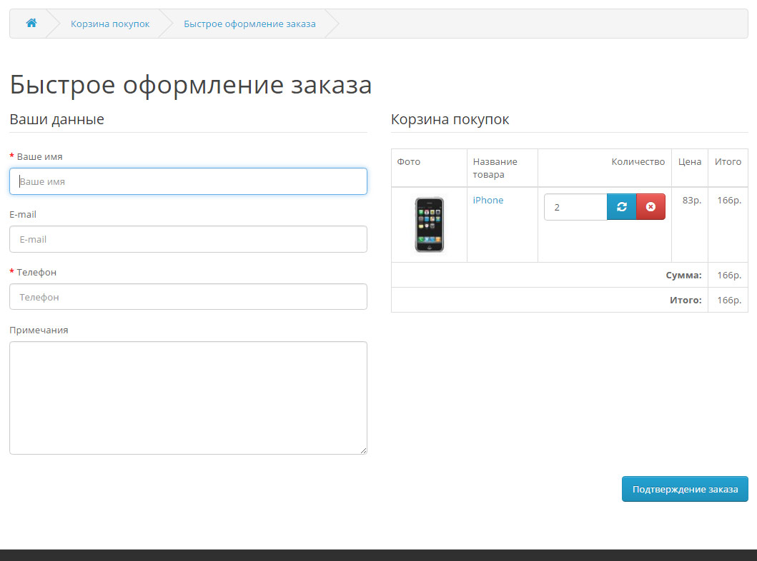 Добро пожаловать в наш интернет-магазин продажи модулей OpenCart и других полезных решений для вашего веб-проекта! Здесь вы найдете Opencart 2.x - 1ClickCheckout - Покупка в один клик и множество других качественных плагинов и модулей для веб-разработки по выгодным ценам. Opencart 2.x - 1ClickCheckout - Покупка в один клик