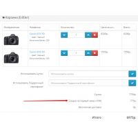 Opencart 2.x - Скидка на первый заказ - Discount on 1st Purchase