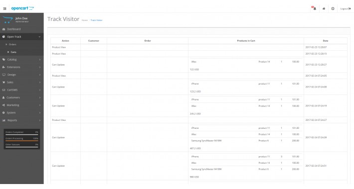 Opencart 2.x - AdminMonitor