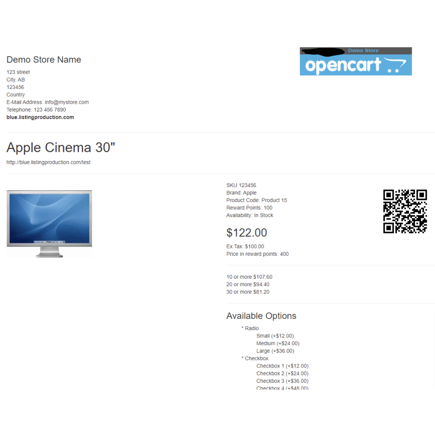 Модуль добавляет ссылку для отправления ваших клиентов на печатную версию страницы товара.