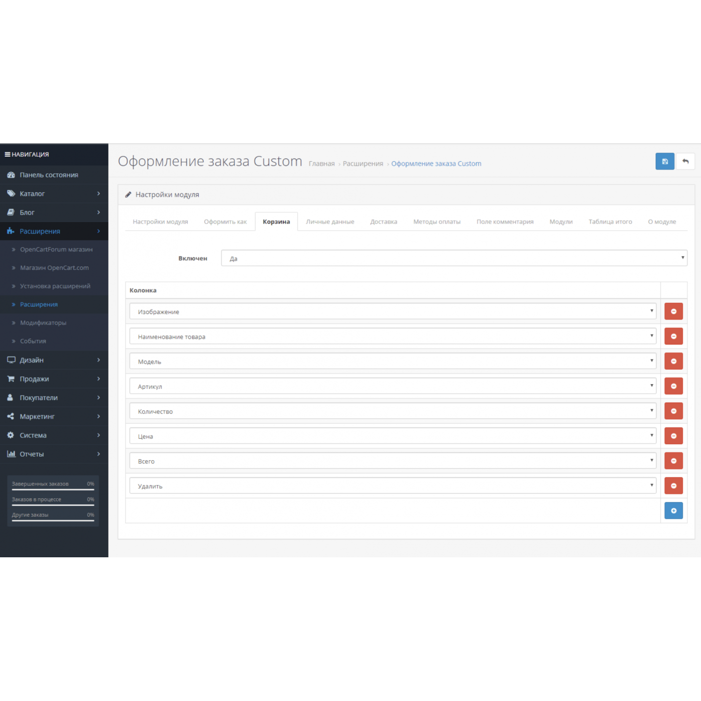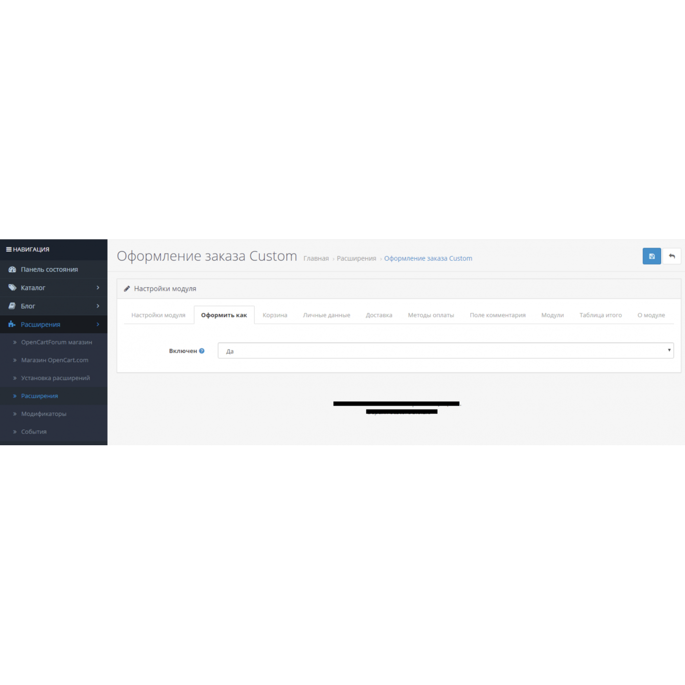 Доработка модуля для определленной версии opencart