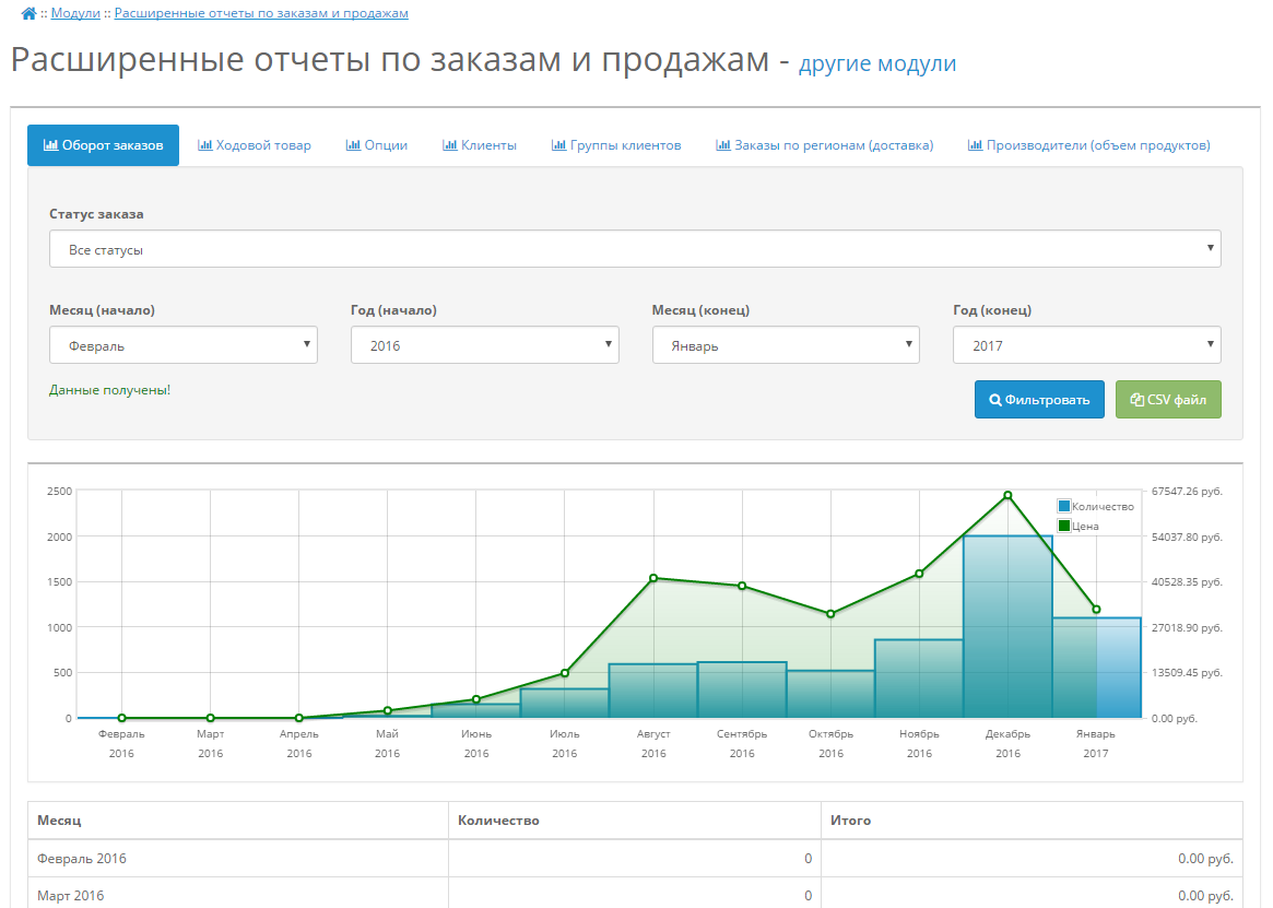Добро пожаловать в наш интернет-магазин продажи модулей OpenCart и других полезных решений для вашего веб-проекта! Здесь вы найдете Расширенные отчеты по заказам и продажам для Opencart 2 и множество других качественных плагинов и модулей для веб-разработки по выгодным ценам. Расширенные отчеты по заказам и продажам для Opencart 2
