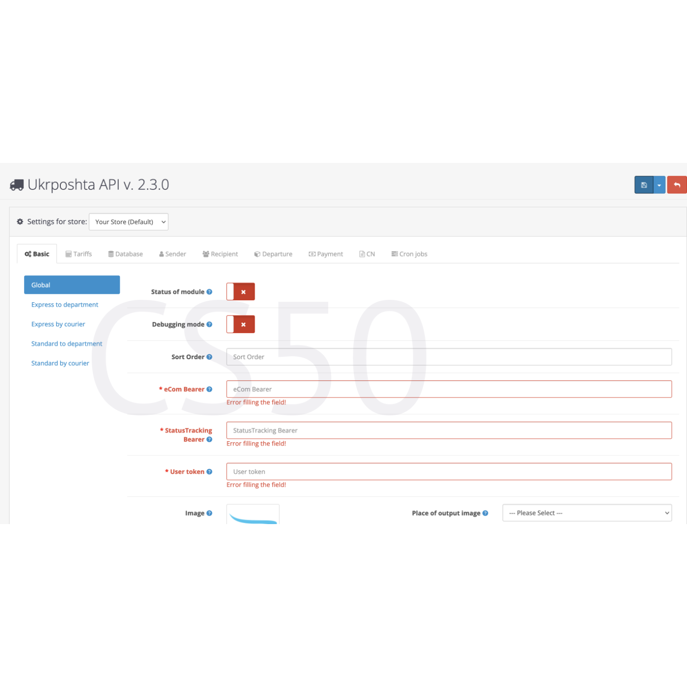 Для удобства работы администратора предусмотрен целый ряд дополнительных функций, таких как экспорт и импорт настроек, возможность загрузки логотипа транспортной компании и его размещения на накладных. Модуль поддерживает настройку параметров отправителя и получателя, включая выбор типов получателей, введение ИНН, ЕГРПОУ, расчетных счетов и контактной информации.