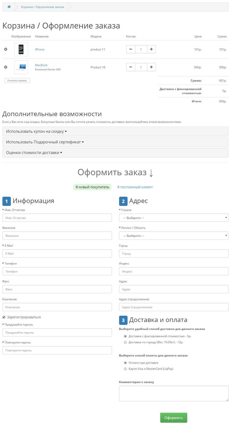 Мы принимаем различные формы оплаты, включая liqpay, fondy. Выберите предпочтительный способ оплаты при оформлении покупки Упрощенное оформление заказа для OpenCart 2.x.