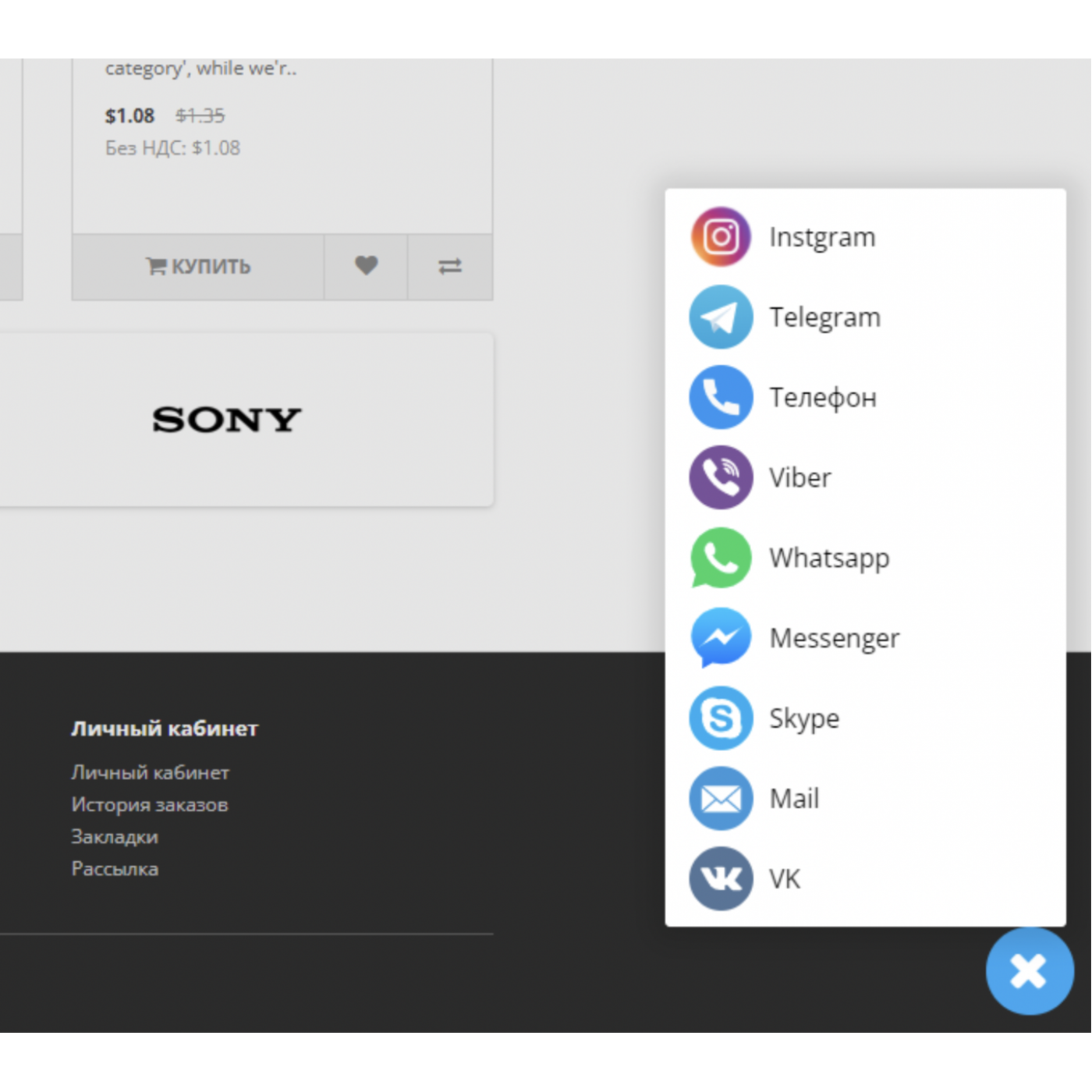 Добро пожаловать в наш интернет-магазин продажи модулей OpenCart и других полезных решений для вашего веб-проекта! Здесь вы найдете Виджет мессенджеров и множество других качественных плагинов и модулей для веб-разработки по выгодным ценам. Виджет мессенджеров
